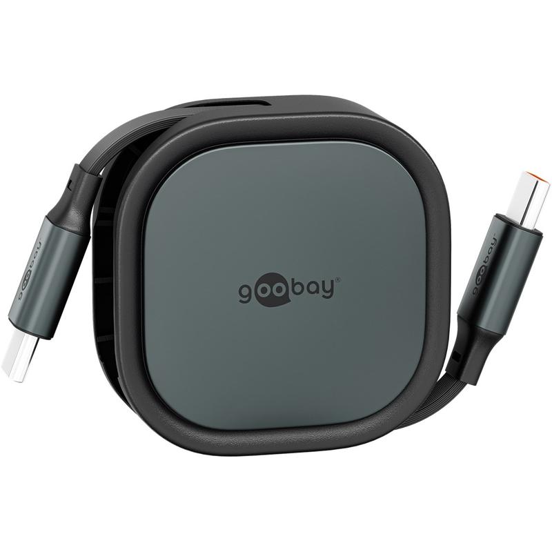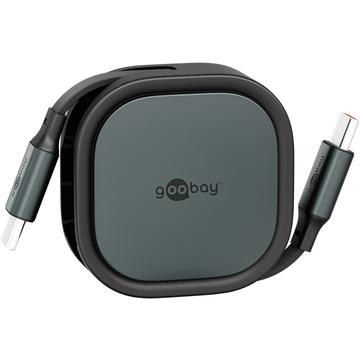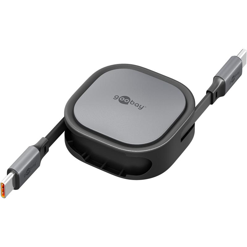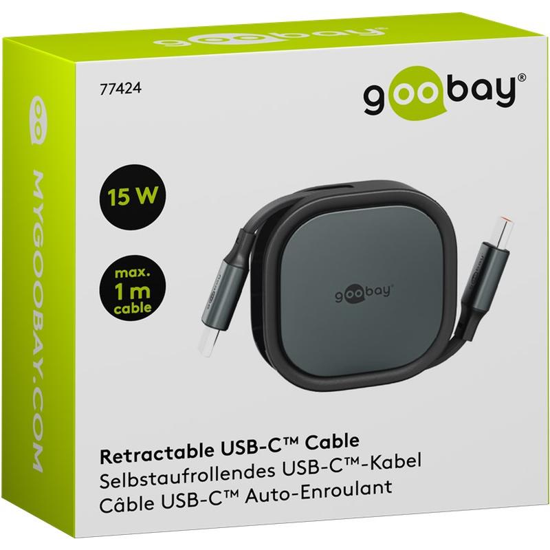 Goobay sisäänvedettävä USB-C-kaapeli - 1m litteä latauskaapeli 15W teholla ja automaattisella sisäänvedon mekanismilla varustettuna