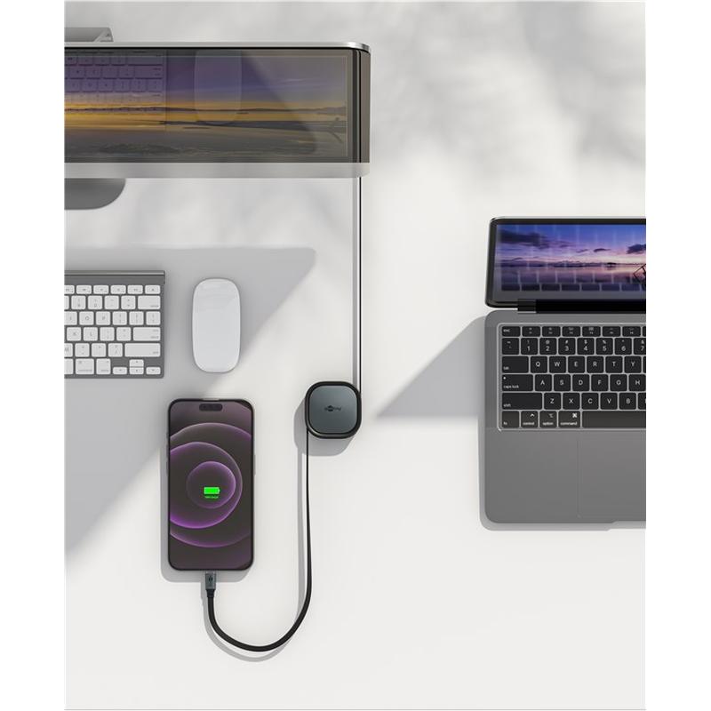 Älypuhelinten, tablettien, kannettavien tietokoneiden, virtapankkien ja konsolien, kuten Nintendo Switchin tai Steam Deckin, lataamiseen ja synkronointiin. Yhteensopiva MacBookin, PC:n, Samsung Galaxyn, Google Pixelin ja muiden kanssa.