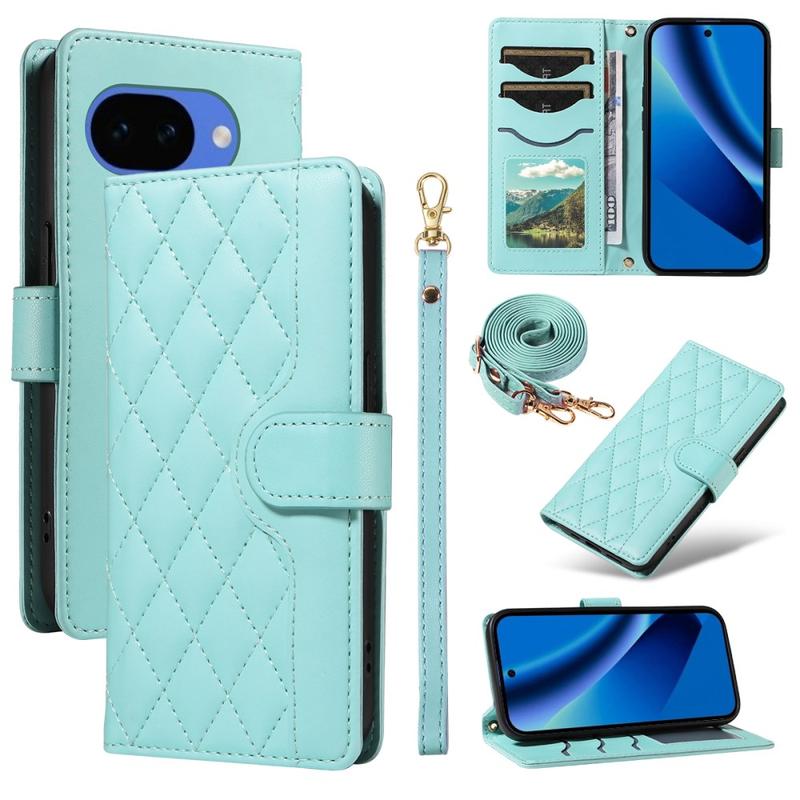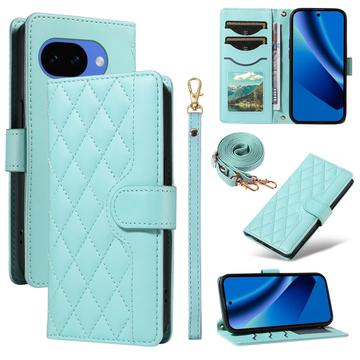 Ylellinen tikattu lompakko asia olkapää & rannehihna Google Pixel 10a - Rhombus kuvio Suojakansi