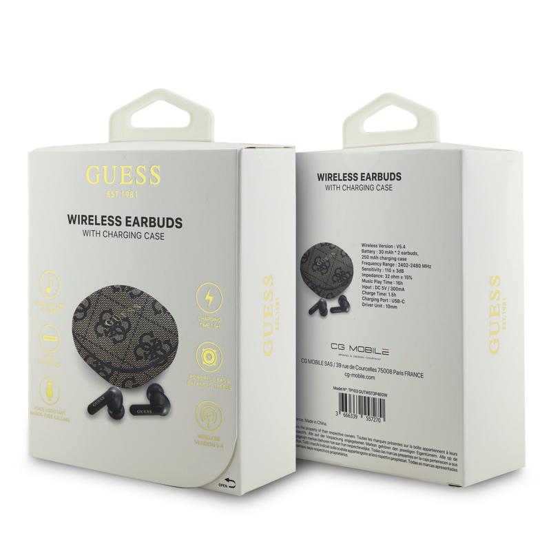 Guess 4G Script Logo ENC True Wireless -kuulokkeet - Bluetooth 5.4 -kuulokkeet, joissa on latauskotelo ja melunvaimennus