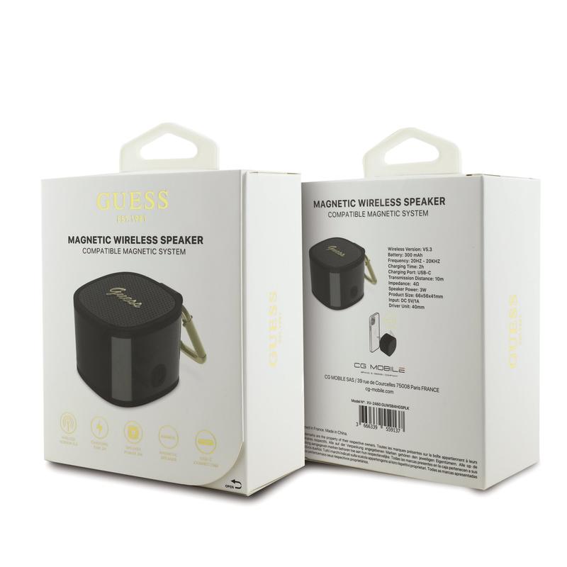 Guess Magneettinen Bluetooth-kaiutin - MagSafe-yhteensopiva kompakti 3W langaton kaiutin, jossa on karabiini, Bluetooth 5.3, USB-C-latausjärjestelmä