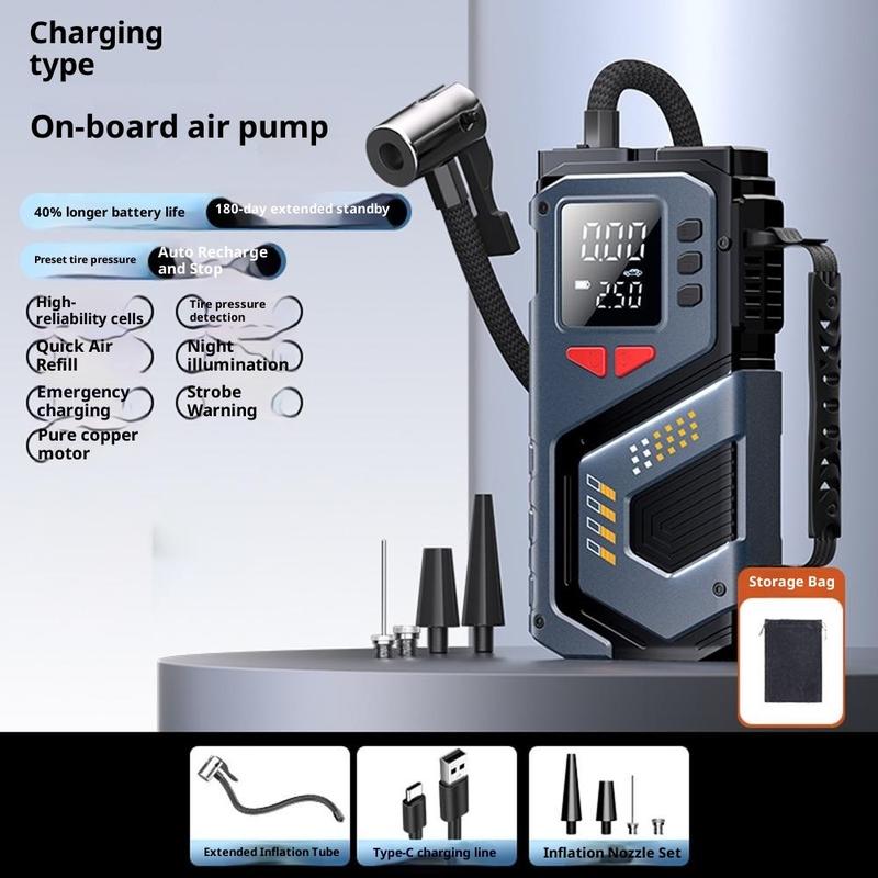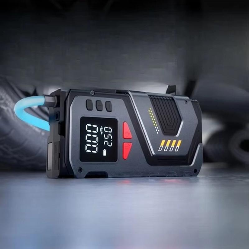 H06 Hätäkäynnistin autoon ja rengastäyttölaite - Digitaalinen näyttö kannettava ilmapumppu, jossa on SOS-valo ja taskulamppu