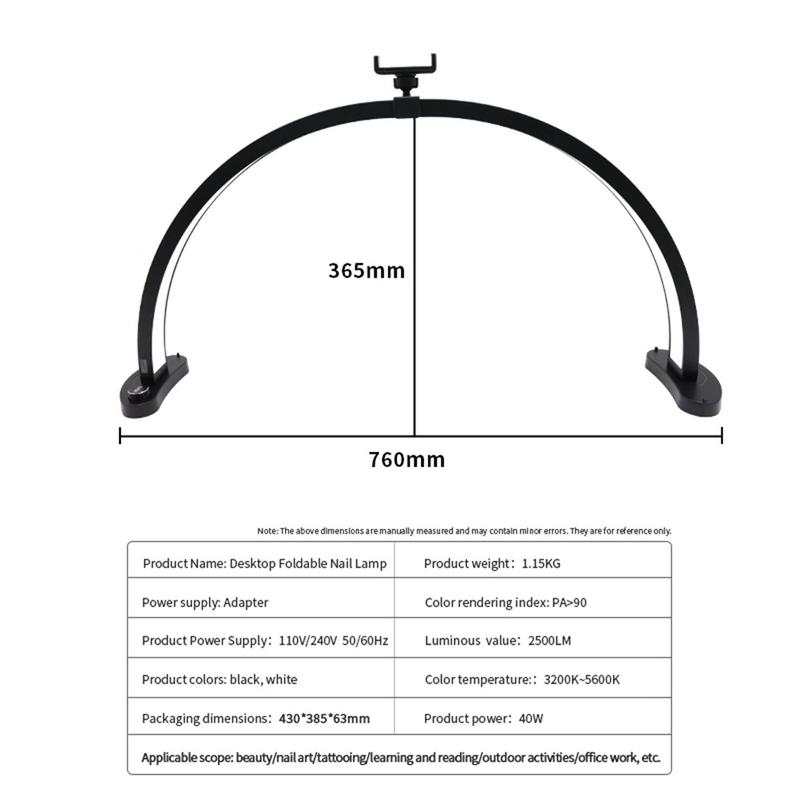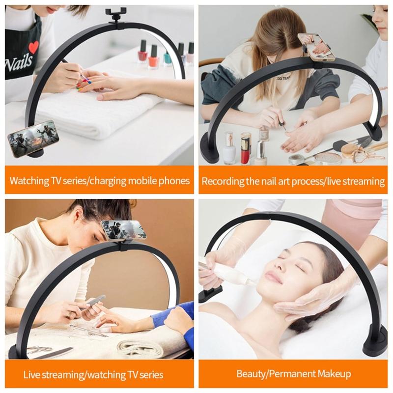 Luo puhdasta, imartelevaa valoa tarkkuutta vaativaan työhön HD-M11X 28 tuuman U-muotoisella varjottomalla LED-täytevalolla. Sen puoliympyrän muotoilu auttaa vähentämään kovia varjoja, mikä tekee siitä ihanteellisen kauneudenhoitoon, kynsitaiteeseen, tatuointityöhön, sisällön luomiseen ja yksityiskohtaisiin työpöytätöihin. 280 kaksivärisen LED-valon avulla voit vaihtaa lämpimien ja viileiden sävyjen välillä ja hienosäätää tunnelmaa 3200K:sta 5600K:een. Korkea CRI >90 auttaa värejä näyttämään luonnollisilta ja tarkoilta - tämä on erityisen hyödyllistä, kun sovitat meikkisävyjä, valitset kynsien värejä tai työskentelet ihon sävyjen kanssa. Valaisin tuottaa jopa 2500 lm kirkkautta 40 W:n teholla, ja se sisältää työpöytätelineet sekä puhelimen pidikkeen lisävarustesarjan siistiä työpisteen kokoonpanoa varten.