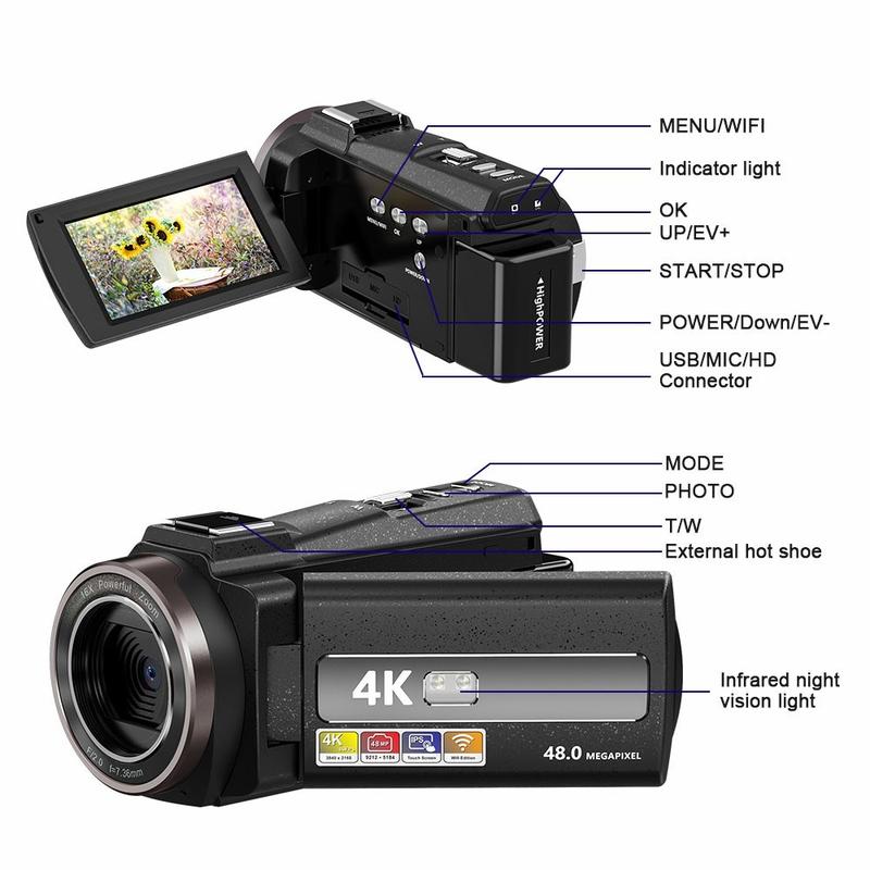 HDV-254KM 4K-digitaalinen videokamera - 48 megapikselin Ultra HD -videokamera, jossa on 3,0 tuuman kosketusnäyttö, 16-kertainen zoom, IR-yökuvaus ja WiFi.