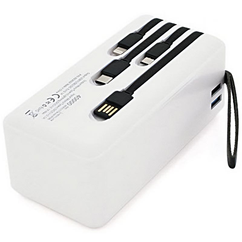 Hepu XL HP210 40000mAh Powerbank - Moniporttinen pikalataus sisäänrakennetuilla USB-C/Lightning/USB-A/MicroUSB-kaapeleilla ja latausindikaattorilla