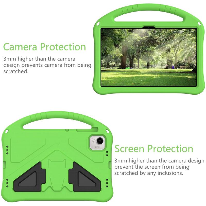 Se on valmistettu iskunkestävästä, ympäristöystävällisestä, myrkyttömästä EVA-materiaalista, joka vahvistaa kulmia ja kohotettua kehystä, joka suojaa näyttöä naarmuilta ja säröiltä. Tämän suorastaan fantastisen suojakotelon takana oleva jalusta Honor Pad X9asalle mahdollistaa suorastaan mukavan handsfree-videon katselun, kun kantokahva tekee kotelosta entistä käytännöllisemmän ja mielenkiintoisemman lapsille.