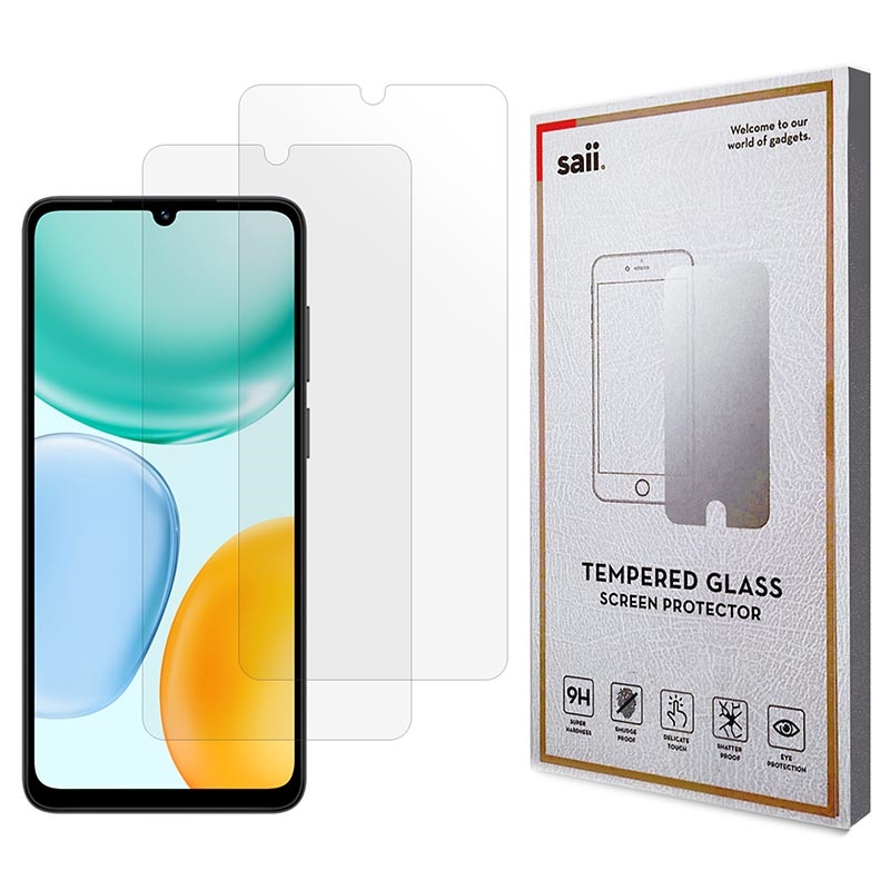 Paketti sisältää kaksi Saii Premium karkaistua Panssarilasia Honor X5c, Honor X5c Plus:lle.