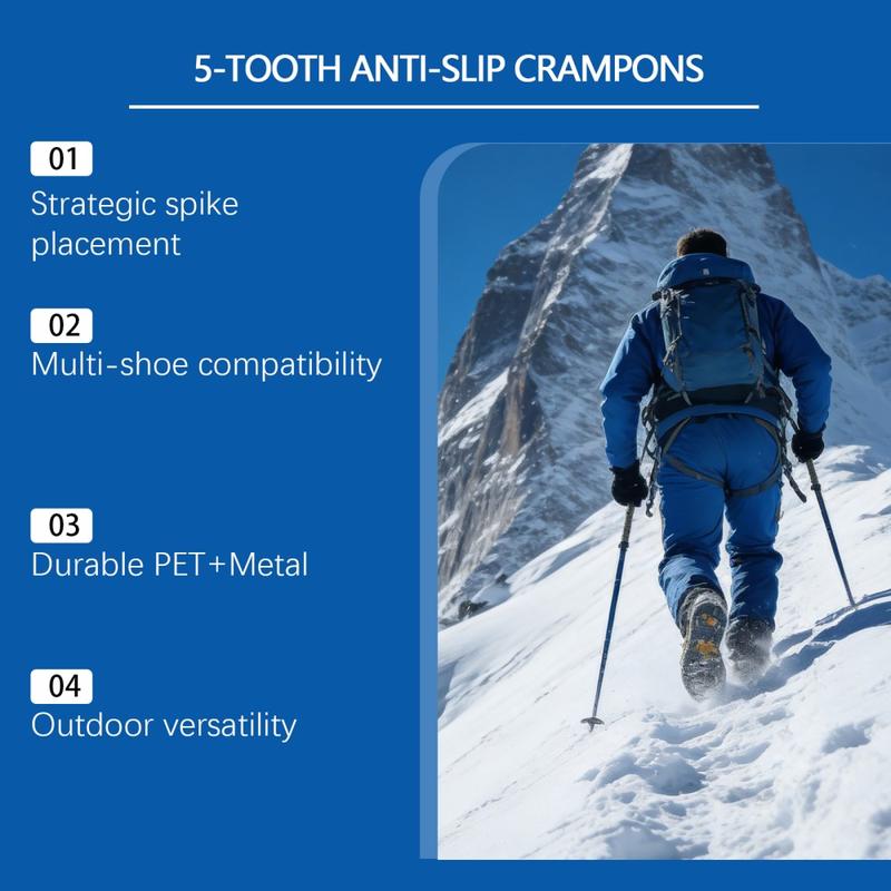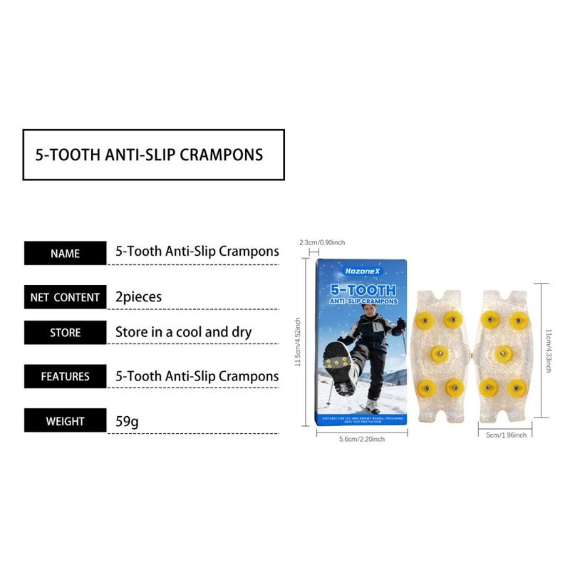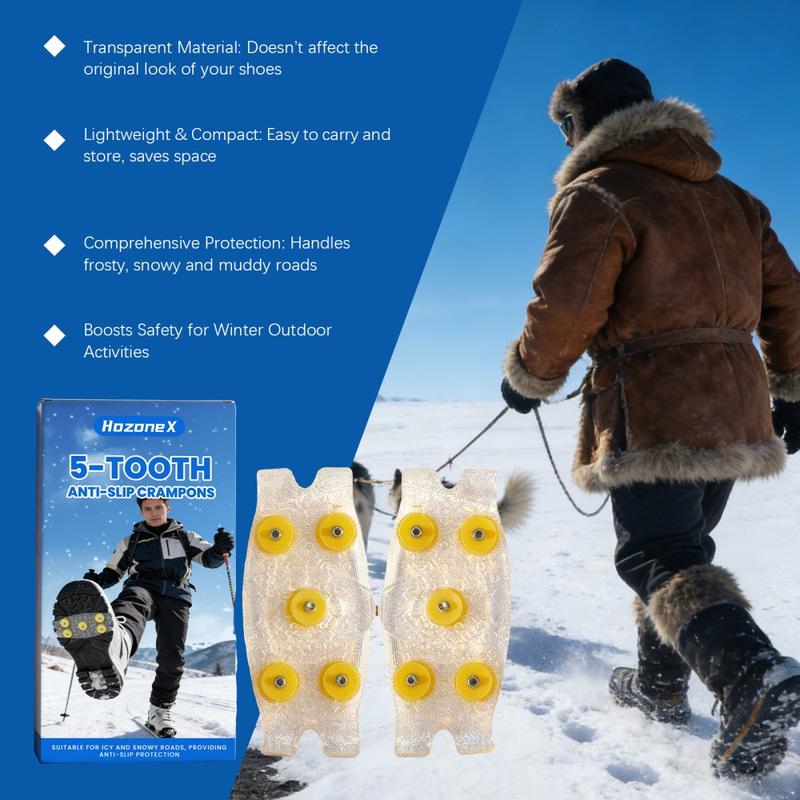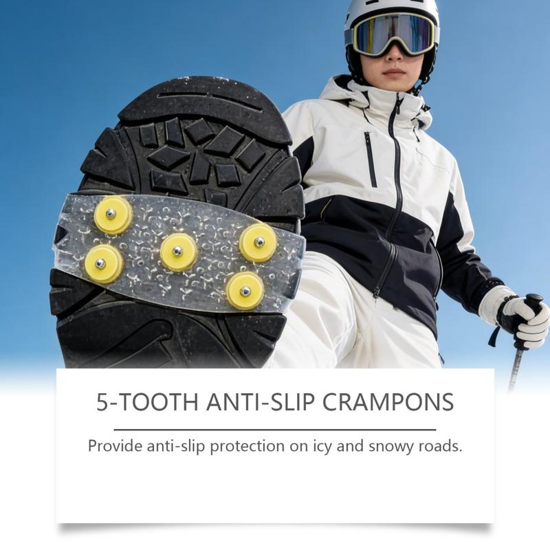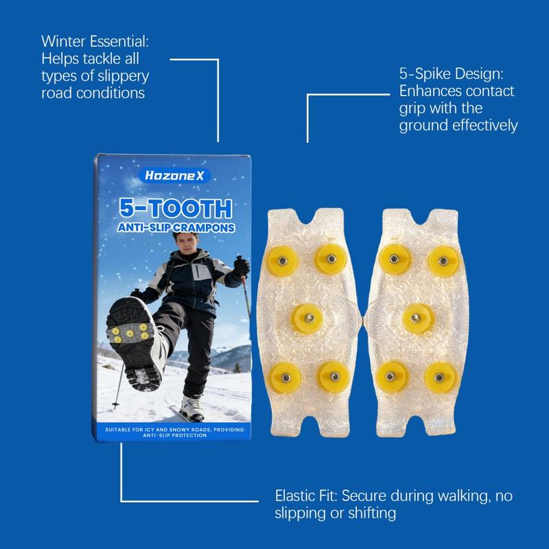 Kävele luottavaisemmin jäisillä poluilla ja lumisilla kaduilla HOZONEX 5-hampaisilla jääraudoilla. Jokaisessa raudassa on viisi strategisesti sijoitettua metallipiikkiä, jotka parantavat pitoa liukkailla pinnoilla, lisäävät maayhteyttä ja auttavat vähentämään liukastumista liukkaissa olosuhteissa. Joustava TPE-pohja venyy monenlaisiin kenkiin ja luo turvallisen istuvuuden, joka pysyy vakaana kävellessä ilman liikkumista.