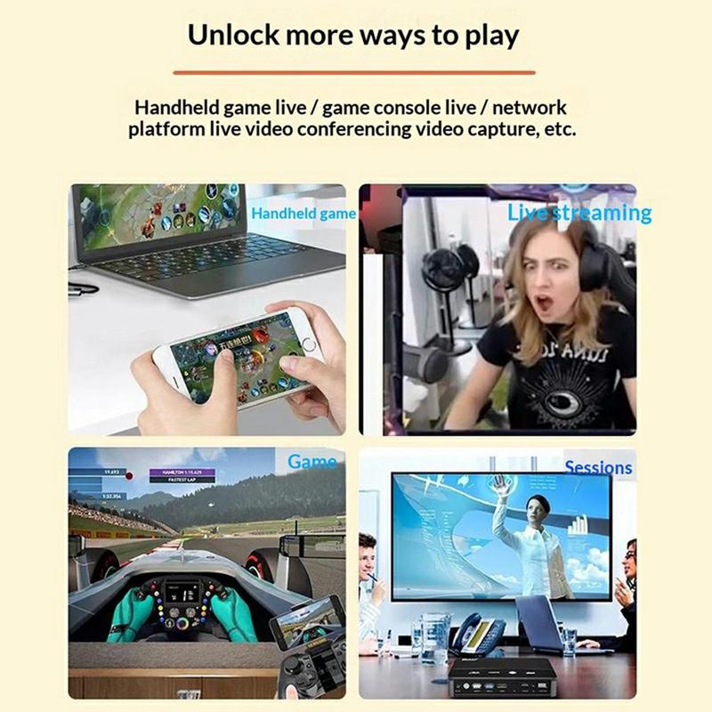 Sen 2-in-1-isäntäliitäntä tekee siitä erityisen joustavan käytettäväksi laajemmalla valikoimalla moderneja ja vanhempia laitteita, kun taas plug-and-play-suunnittelu pitää asennuksen nopeana ja yksinkertaisena. Koska se tukee UVC- ja UAC-standardeja, ulkoisia ajureita tai erillistä virtalähdettä ei tarvita normaalikäytössä. Liitä vain lähdelaitteesi, kytke tallennuskortti tietokoneeseesi ja aloita tallennus tai suoratoisto.