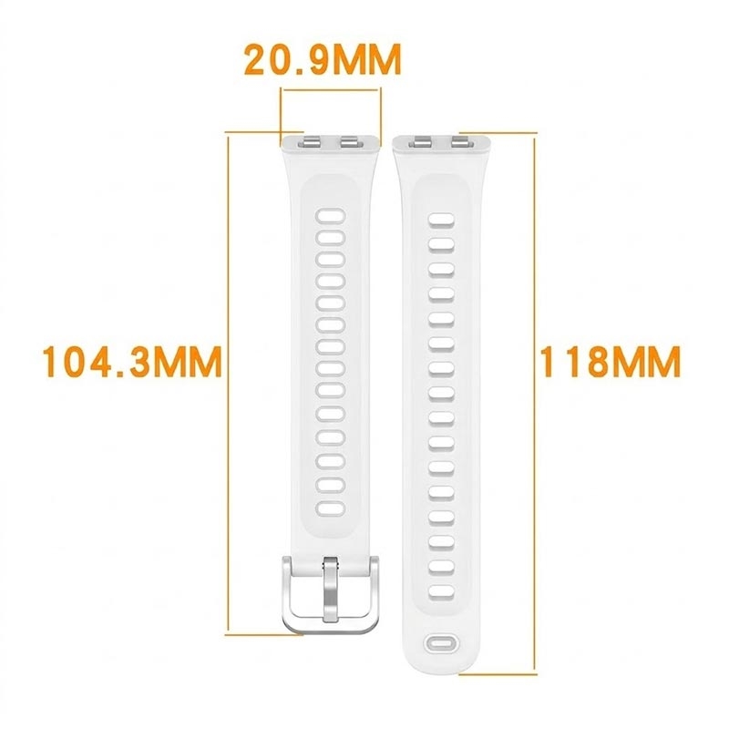 Tee Huawei Band 11, Band 11 Pro -tuotteestasi yhtä upouusi pehmeällä silikonirannekkeella. Kun rannekkeesta löytyy useita reikiä, silloin voi säätää kokoa ranteen ympärysmitan mukaan. Se on valmistettu ympäristöystävällisestä silikonimateriaalista, joka kestää päivittäistä kulutusta. Ranneke pehmeä, joustava, hengittävä, ja sen kevyt muotoilu tekee siitä mukavamman käyttää ilman ihoärsytystä.