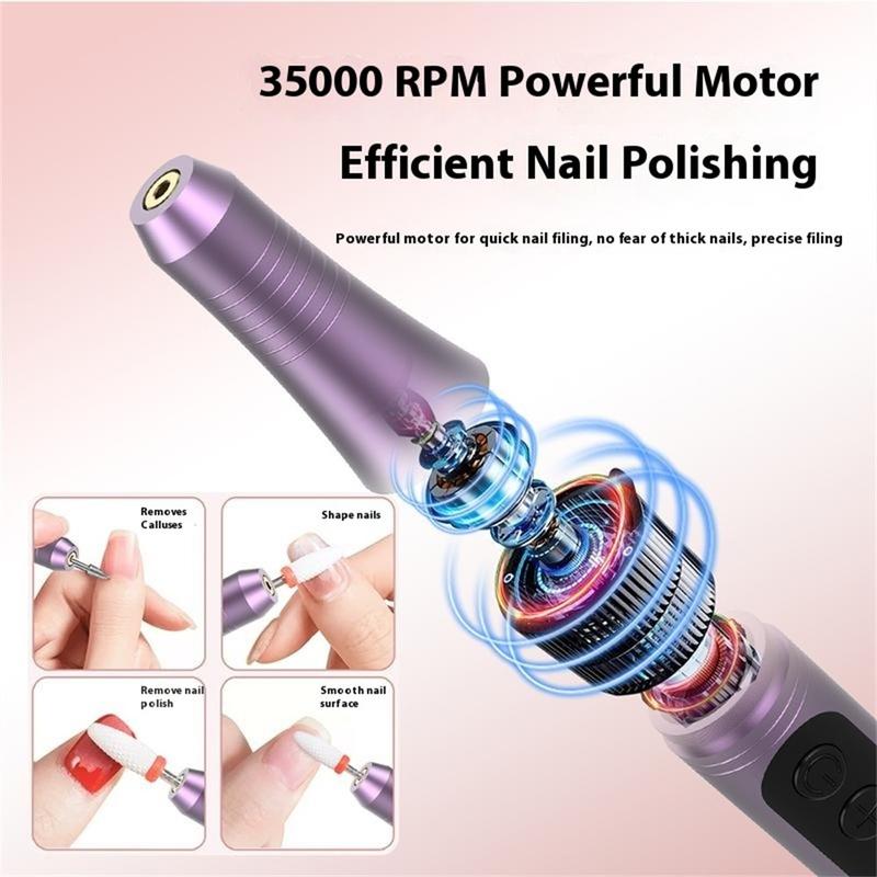 HX-09 Sähköinen kynsiviila - 4-nopeuksinen USB-ladattava kynsien hiontakone koti- ja salonkikäyttöön