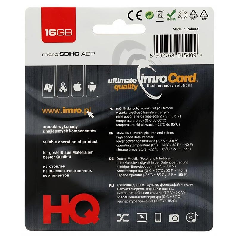 Imro microSDHC-muistikortti SD-sovittimella - 16 Gt