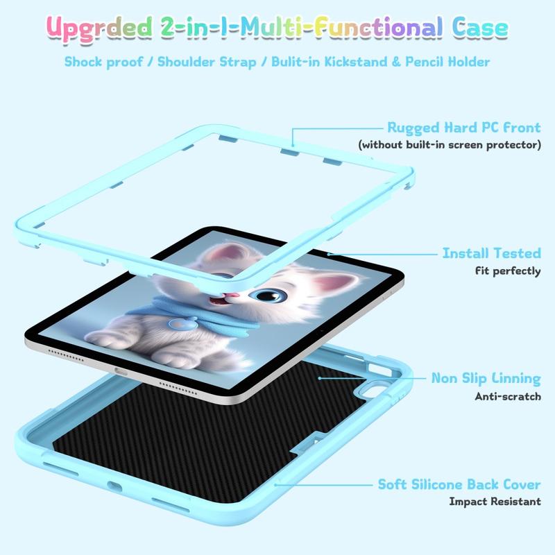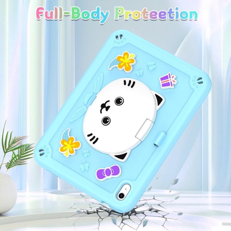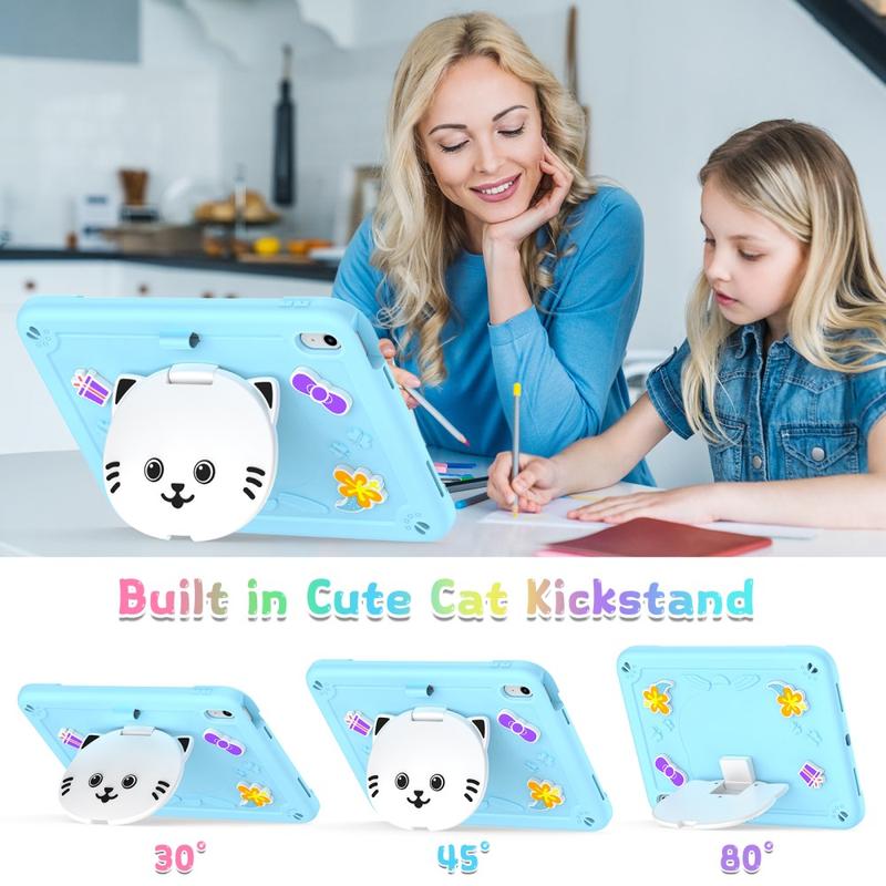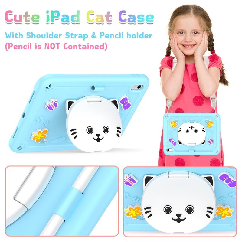 Söpö kissa hybridi kotelo potkukannattimella, olkahihnalla ja kynänpidikkeellä iPad (2022), iPad (2025), iPad Air 11 (2025)
