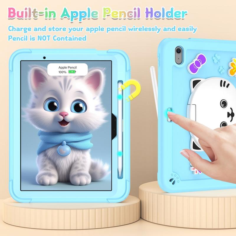 Söpö kissa hybridi kotelo potkukannattimella, olkahihnalla ja kynänpidikkeellä iPad Air 11 (2024), iPad Air 11 (2025), iPad Air 11 (2025)