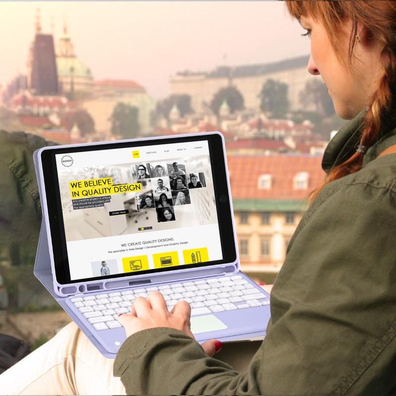 Tässä iPad Air 11 2026/2025/2024, iPad Air 2022/2020 -näppäimistökotelossa yhdistyvät toiminnallisuus ja tyylikkyys. Se on ihanteellinen ammattilaisille, opiskelijoille ja matkailijoille, jotka etsivät mukavaa kirjoituskokemusta, täydellistä laitesuojausta ja älykästä navigointia yhdessä kompaktissa lisävarusteessa.