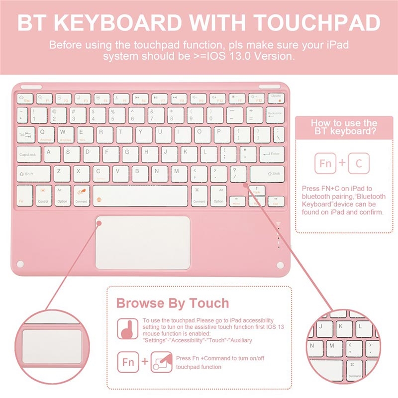 Paranna iPad Air 11 2026/2025/2024, iPad Air 2022/2020 -puhelimesi Bluetooth-näppäimistökotelolla, joka on monikäyttöinen 2-in-1-tarvike, jossa yhdistyvät suojaus, tuottavuus ja tyyli. Ensiluokkaisesta polyretaanista valmistettu tyylikäs kotelo suojaa täydellisesti naarmuilta, iskuilta ja sormenjäljiltä säilyttäen samalla ammattimaisen ulkonäön. Bluetooth-näppäimistö kytkeytyy langattomasti sujuvaan ja reagoivaan kirjoittamiseen, ja integroitu kosketusalusta tukee monikielistä ohjausta vaivatonta navigointia varten. Taustavalaistulla näppäimistöllä voit kirjoittaa mukavasti myös heikossa valaistuksessa. Sisäänrakennettu säädettävä jalusta tarjoaa ergonomisen katselukulman, joten se sopii täydellisesti kirjoittamiseen, suoratoistoon tai lukemiseen. Tämä näppäimistökotelo on suunniteltu liike-elämään, matkustamiseen tai jokapäiväiseen käyttöön, ja se muuttaa tabletin kannettavaksi työasemaksi.