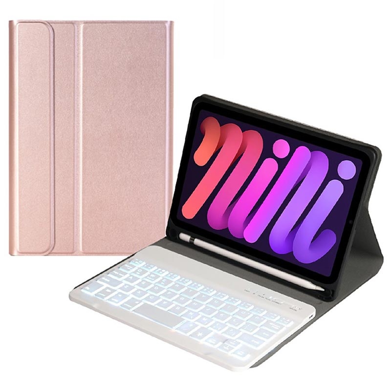 iPad Mini (2021), iPad Mini (2024) Bluetooth-näppäimistökotelo, jossa on taustavalaistu, kosketuslevy ja jalusta - US-näppäimistöasettelu
