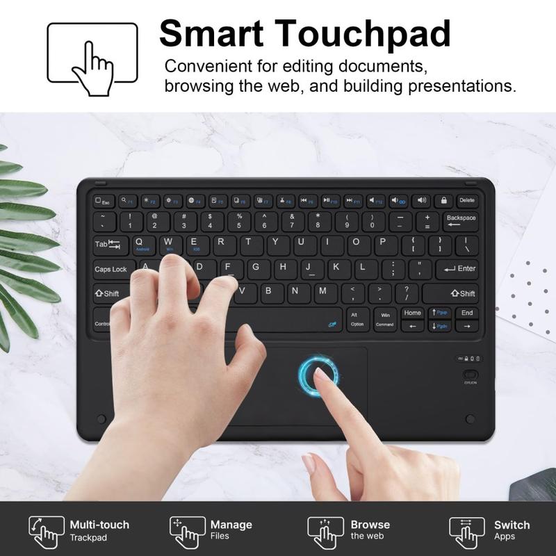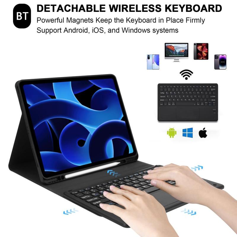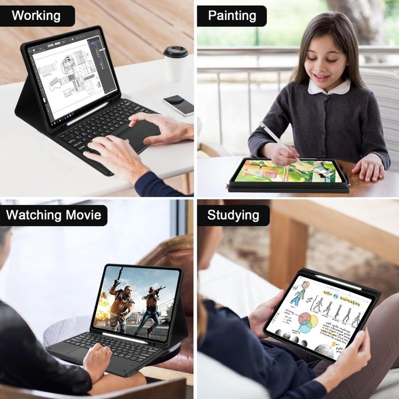 Tämä Bluetooth-näppäimistö muuntaa iPad Pro 12.9 2018/2020/2021/2022:n kannettavaksi tietokoneeksi parissa sekunnissa. Voit käyttää Bluetooth-näppäimistöä myös erillään kotelosta. Täydellinen ratkaisu nostamaan käyttäjäkokemusta ja pitämään iPad Pro 12.9 2018/2020/2021/2022 koskemattomassa kunnossa ilman vaurioita.