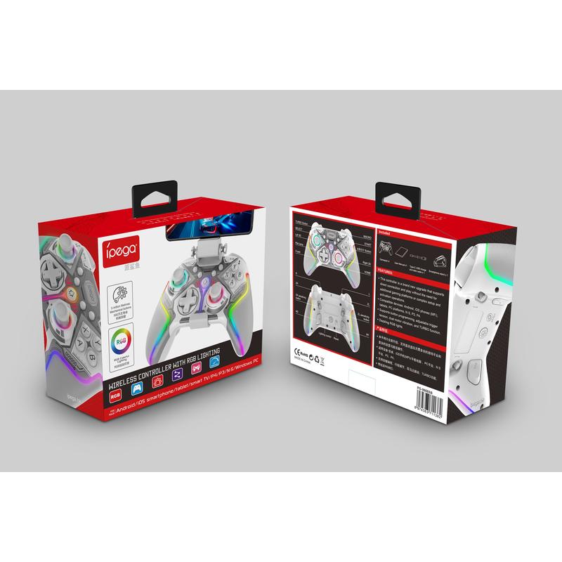 iPega PG-9666BH langaton RGB-peliohjain - Hall-efektisauvat ja liipaisimet, turbo, ohjelmoitavat painikkeet, kaksoisvärinä - Android/iOS (MFi)/PS3/PS4/PC/Switch