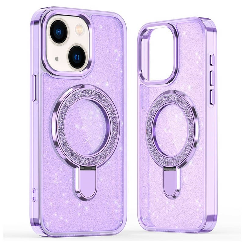 Glitter Kotelo potkukiinnikkeellä iPhone 15ille - MagSafe-yhteensopiva TPU + PC hybridi potkukiinnike kansi