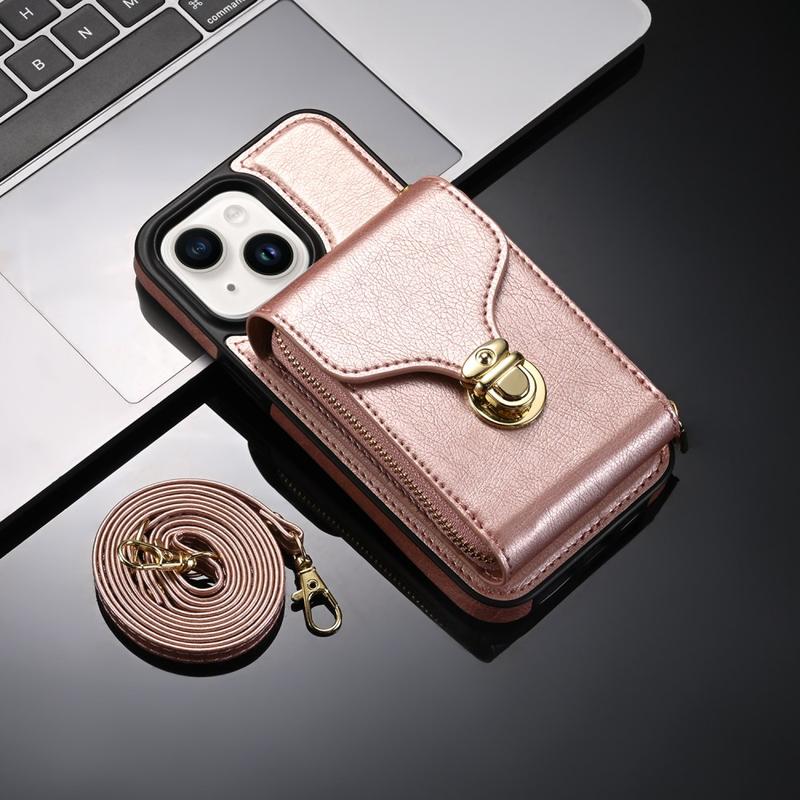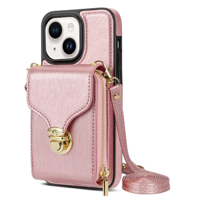 Kaikki yhdessä Suojaava TPU-kotelo lompakko & hihna iPhone 15ille