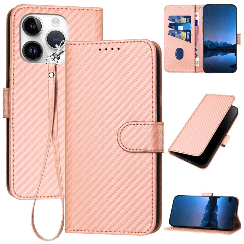 Premium lompakkokotelo hihnalla - iPhone 15 Pro Max - Hiilikuitu tekstuuria