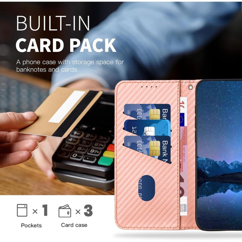 Tämä lompakkokotelo tarjoaa tyylikkään muotoilun, luotettavan suojan ja älykkään käytettävyyden. Teksturoitu hiilikuitupinnoite lisää modernia, ammattimaista ilmettä, kun taas sisäinen TPU-kerros vaimentaa iskuja tahattomista pudotuksista. Kädet vapaana -toiminnolla ja irrotettavalla hihnalla varustettu kotelo on suunniteltu mukavuutta ja monipuolisuutta varten.