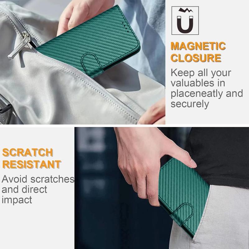 Tämä lompakkokotelo tarjoaa tyylikkään muotoilun, luotettavan suojan ja älykkään käytettävyyden. Teksturoitu hiilikuitupinnoite lisää modernia, ammattimaista ilmettä, kun taas sisäinen TPU-kerros vaimentaa iskuja tahattomista pudotuksista. Kädet vapaana -toiminnolla ja irrotettavalla hihnalla varustettu kotelo on suunniteltu mukavuutta ja monipuolisuutta varten.
