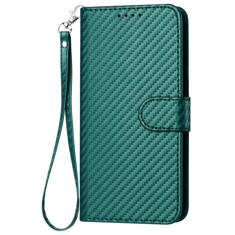 Premium lompakkokotelo hihnalla - iPhone 15 Pro - Hiilikuitu tekstuuria