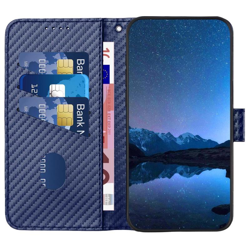Tämä lompakkokotelo tarjoaa tyylikkään muotoilun, luotettavan suojan ja älykkään käytettävyyden. Teksturoitu hiilikuitupinnoite lisää modernia, ammattimaista ilmettä, kun taas sisäinen TPU-kerros vaimentaa iskuja tahattomista pudotuksista. Kädet vapaana -toiminnolla ja irrotettavalla hihnalla varustettu kotelo on suunniteltu mukavuutta ja monipuolisuutta varten.