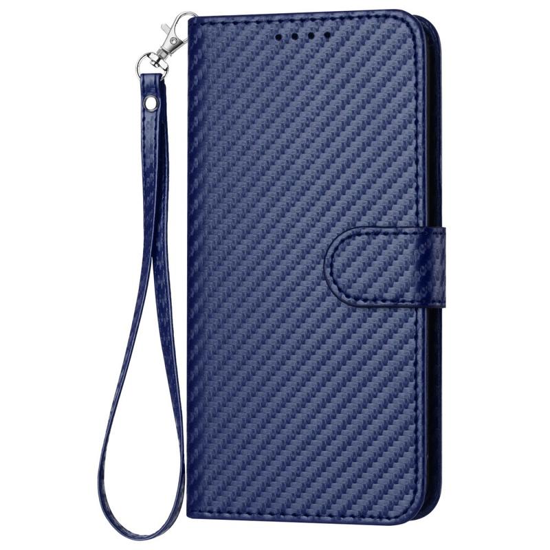 Premium lompakkokotelo hihnalla - iPhone 15 Pro - Hiilikuitu tekstuuria