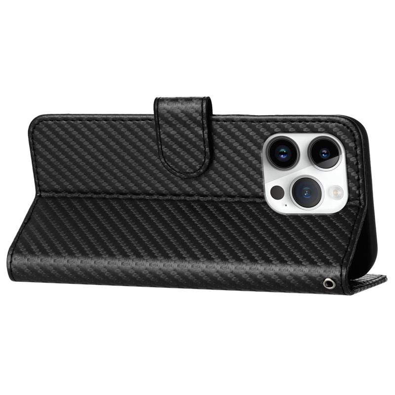 Premium lompakkokotelo hihnalla - iPhone 15 Pro - Hiilikuitu tekstuuria