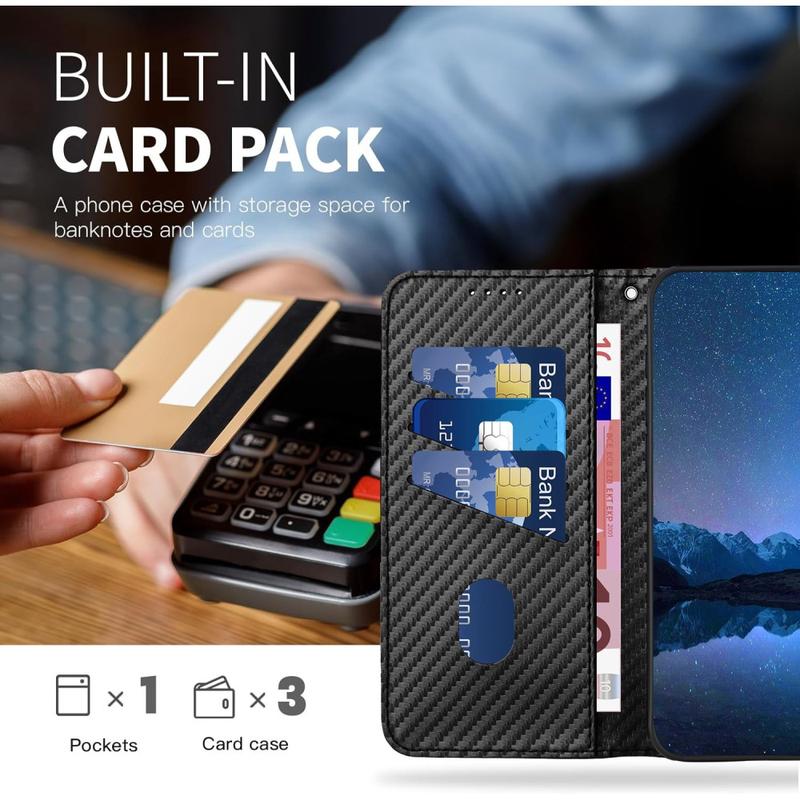 Tämä lompakkokotelo tarjoaa tyylikkään muotoilun, luotettavan suojan ja älykkään käytettävyyden. Teksturoitu hiilikuitupinnoite lisää modernia, ammattimaista ilmettä, kun taas sisäinen TPU-kerros vaimentaa iskuja tahattomista pudotuksista. Kädet vapaana -toiminnolla ja irrotettavalla hihnalla varustettu kotelo on suunniteltu mukavuutta ja monipuolisuutta varten.
