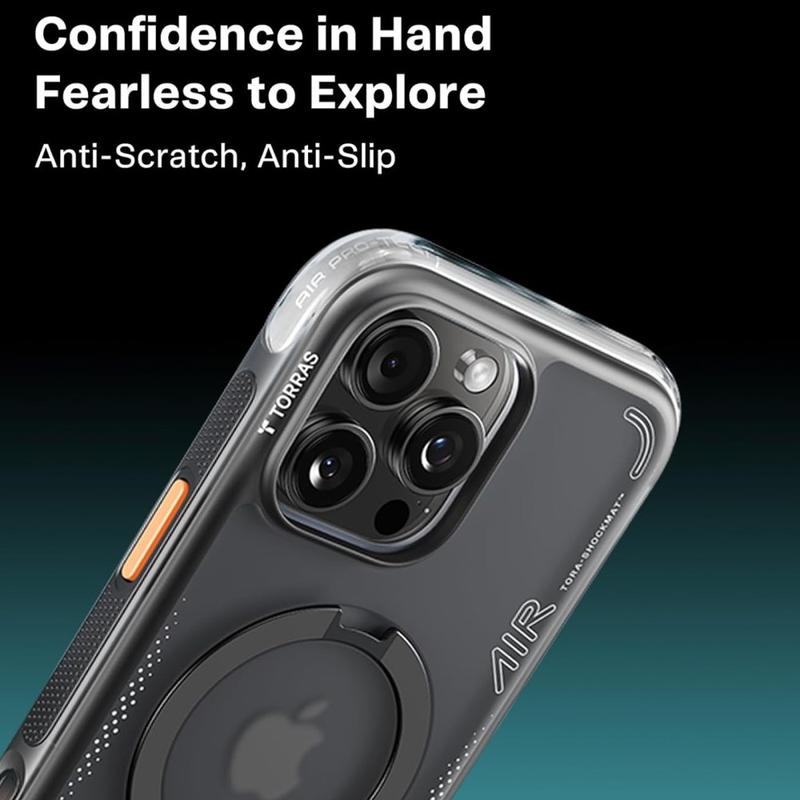 Torras Ostand Q3 Air MagSafe -kotelossa iPhone 15 Pro Maxille yhdistyvät moderni estetiikka ja edistyksellinen suojaus. Laadukkaista TPU- ja PC-materiaaleista valmistettu suojakotelo tarjoaa ohuen ja tyylikkään profiilin sekä turvallisen ja mukavan otteen.