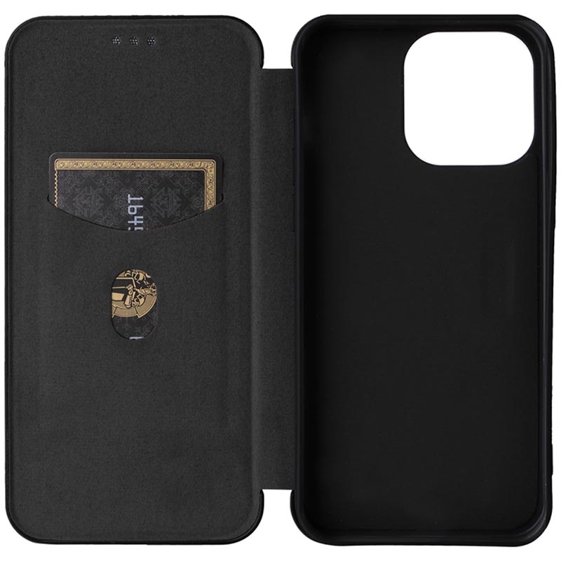Päivitä iPhone 15 Pro:n ulkoasua tällä korkealaatuisella hiilikuitukuvioidulla läppäkotelolla. Itse läppäkotelo suojaa puhelimesi naarmuilta ja päivittäisiltä vaurioilta. Itse kannessa on korttipaikka, johon mahtuu henkilöllisyystodistus tai yleisesti käytetty luottokortti. Siinä on rengaspidike, jota voidaan käyttää tukijalustana median katselulle hands-free-tilassa.