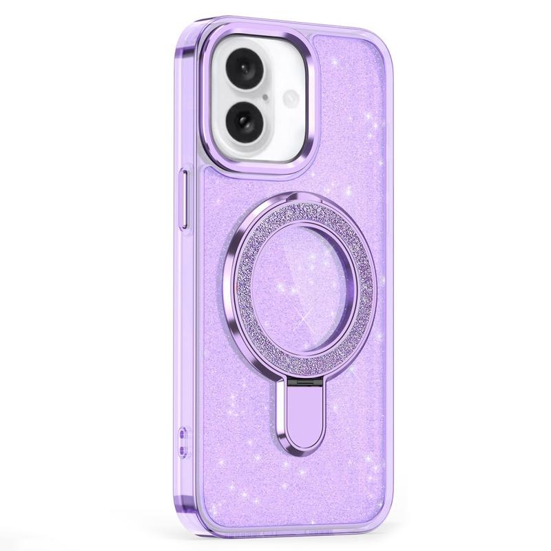 Glitter Kotelo potkukiinnikkeellä iPhone 16ille - MagSafe-yhteensopiva TPU + PC hybridi potkukiinnike kansi