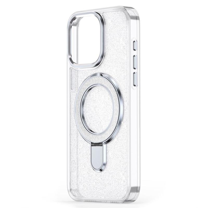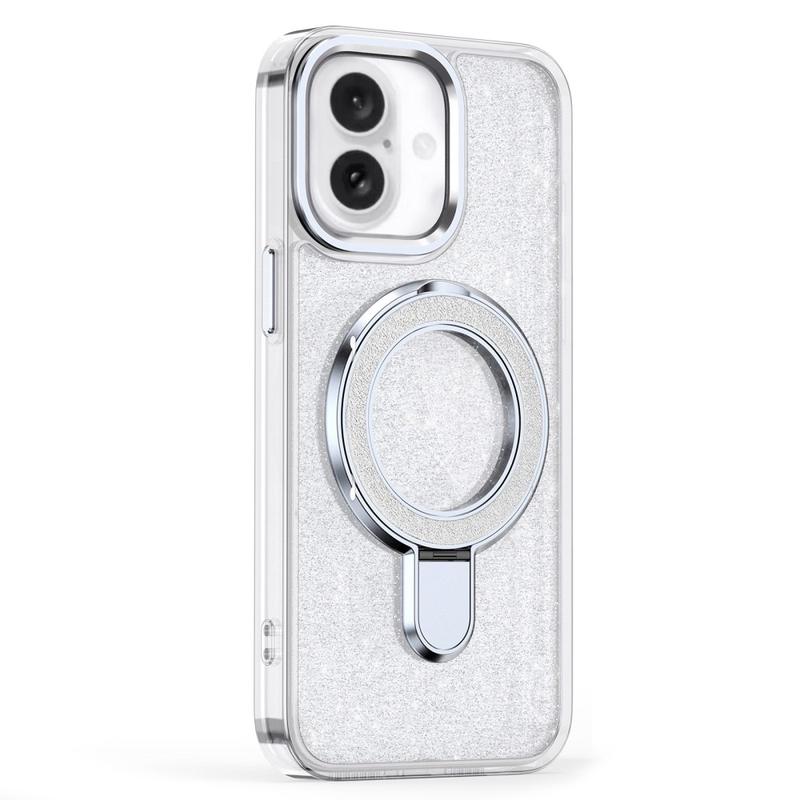 Glitter Kotelo potkukiinnikkeellä iPhone 16ille - MagSafe-yhteensopiva TPU + PC hybridi potkukiinnike kansi