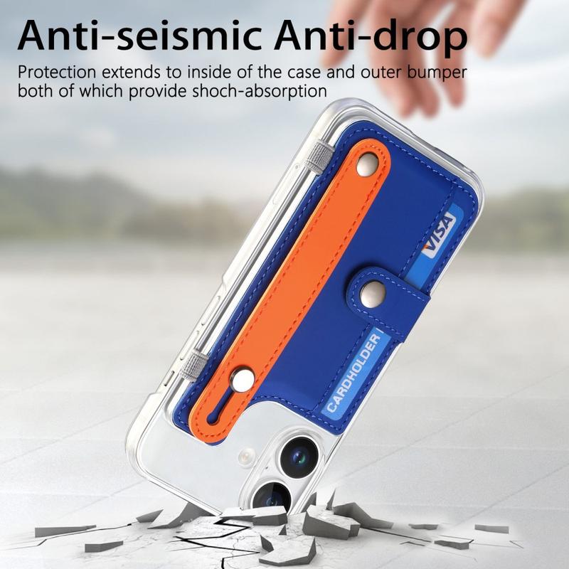 Muovikotelo CY1 korttipaikalla, rannekkeella, potkukannattimella iPhone 16 -puhelimelle.