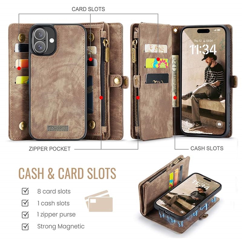 Caseme 008 2-in-1 Monitoiminen Lompakkokotelo - iPhone 16 Plus