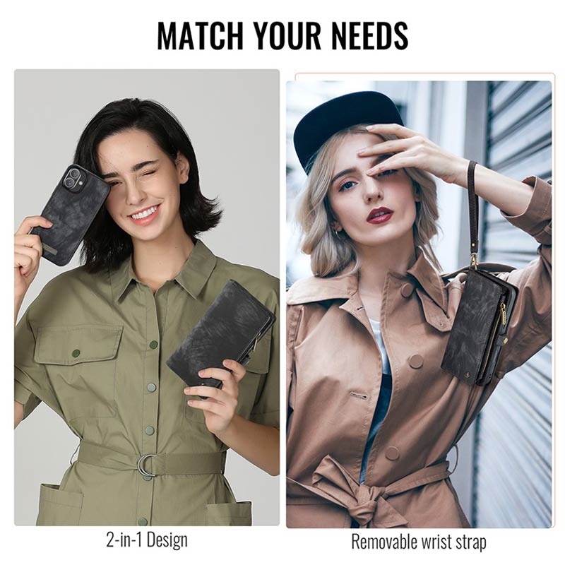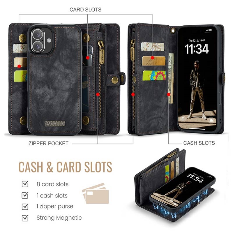 Tee päivästäsi todella tehokas tällä Caseme 008 2-in-1 iPhone 16 Plus -lompakkokotelolla.