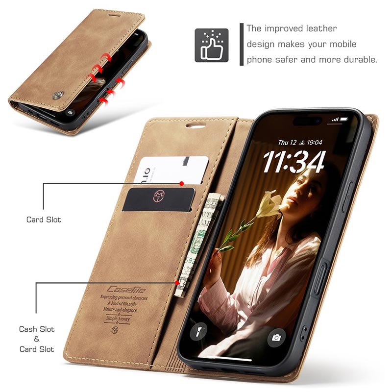 - Caseme 013 -sarjan lompakkokotelo arvokkaalle iPhone 16 Plus:lle
