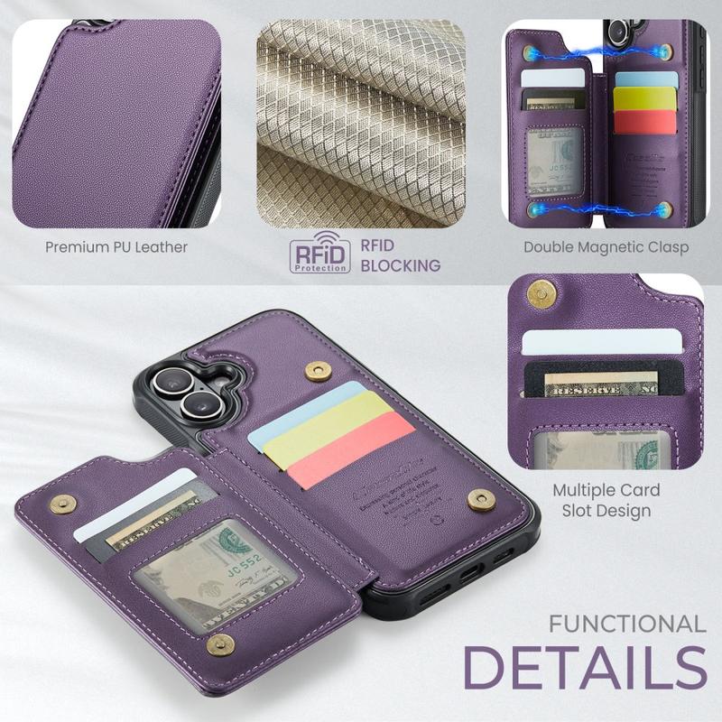 Caseme C22 Kotelo iPhone 16 Plus RFID suojattu kortti lompakko