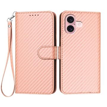 Premium lompakkokotelo hihnalla - iPhone 16 - Hiilikuitu tekstuuria