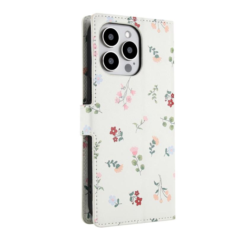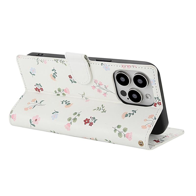 Rombinen kukkakuvioinen lompakkokotelo - iPhone 16 Pro - hihnalla ja korttipaikat