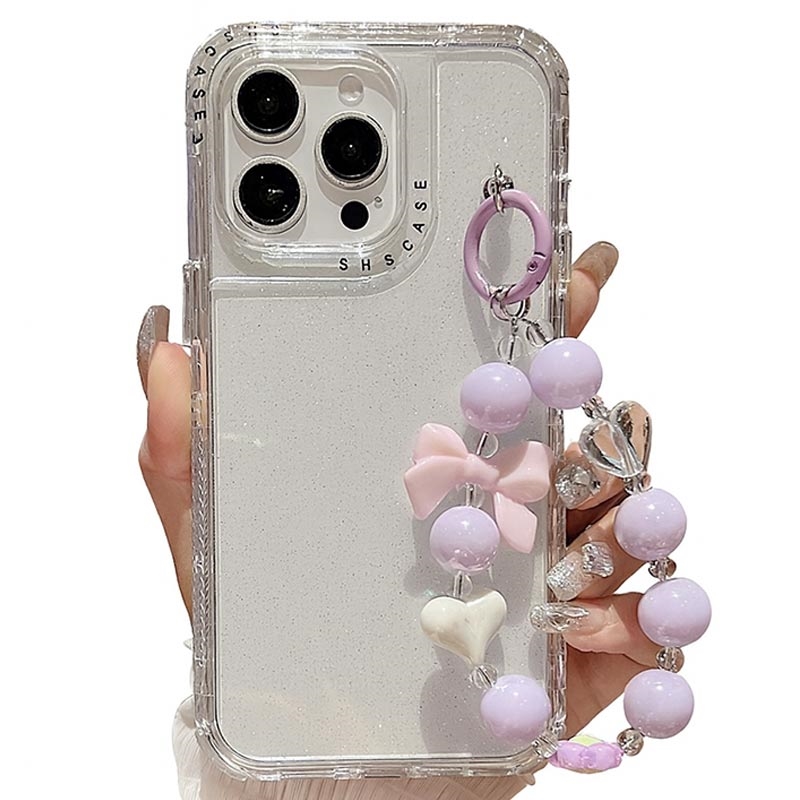 iPhone 16 Pro Max Glitter Iskunkestävä hybridi kotelo rannehihnalla - läpinäkyvä