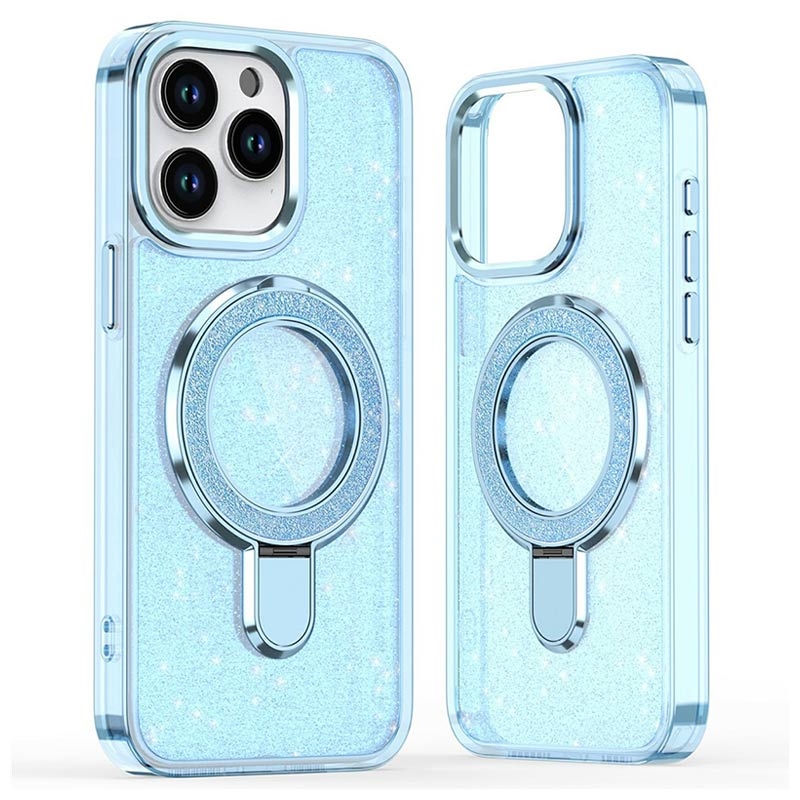 Glitter Kotelo potkukiinnikkeellä iPhone 16 Pro Maxille - MagSafe-yhteensopiva TPU + PC hybridi potkukiinnike kansi