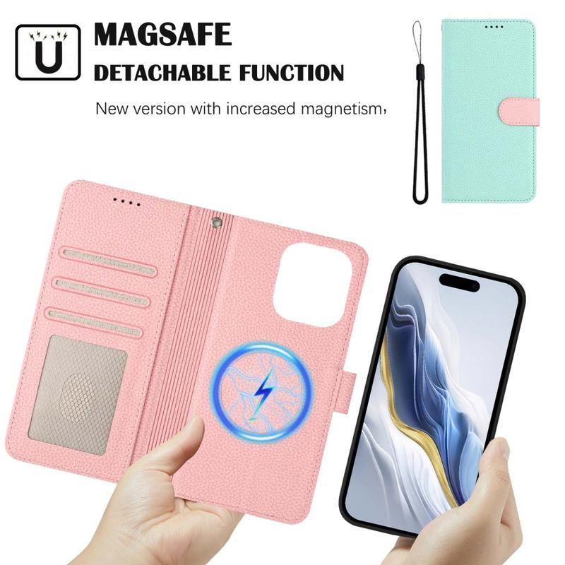 Irrotettava lompakkokotelo, jossa MagSafe, RFID-suojaus ja käsihihna iPhone 16 Pro -puhelimelle