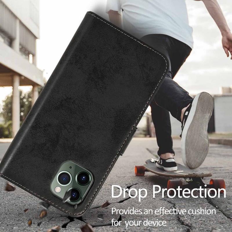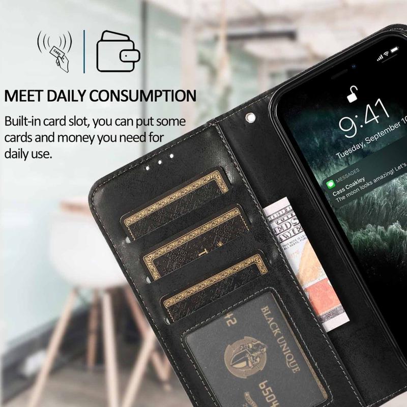 Retro-tyylisestä mattapintaisesta polyuretaanista valmistettu ja pehmeällä TPU-sisäkuorella varustettu kotelo tuntuu mukavalta kädessä ja tarjoaa luotettavan suojan päivittäisiä naarmuja, kolhuja ja kulumista vastaan. Sisäänrakennettu lompakko sisältää 3 korttipaikkaa ja seteliosaston, joten voit helposti kantaa tärkeimmät tavarat mukanasi yhdessä paikassa. Taitettava muotoilu toimii myös telineenä, mikä tarjoaa mukavamman kädet vapaana -katselukulman videoiden katseluun, selailuun tai puheluihin.
