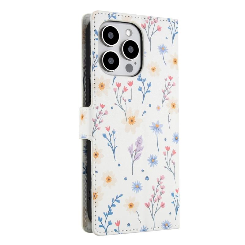 Rombinen kukkakuvioinen lompakkokotelo - iPhone 16 Pro - hihnalla ja korttipaikat