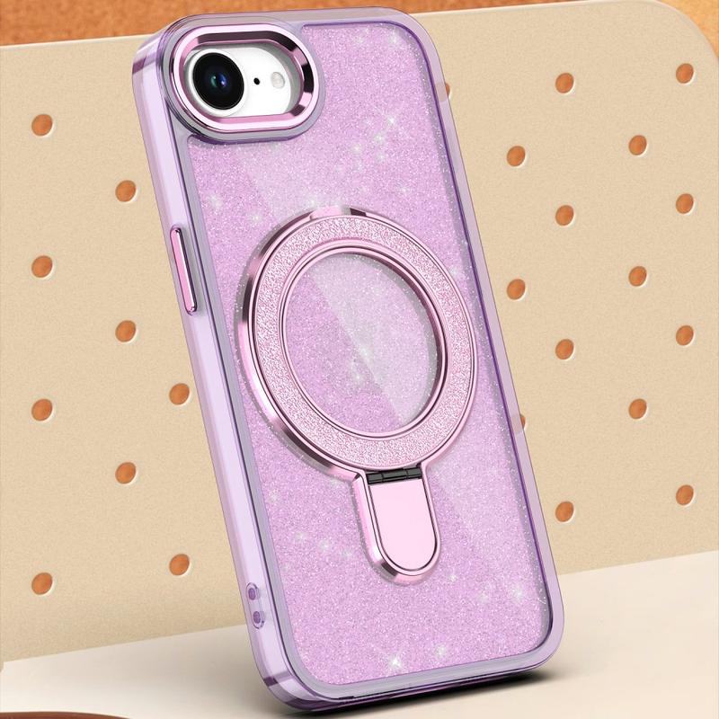 Glitter Kotelo potkukiinnikkeellä iPhone 16eille - MagSafe-yhteensopiva TPU + PC hybridi potkukiinnike kansi